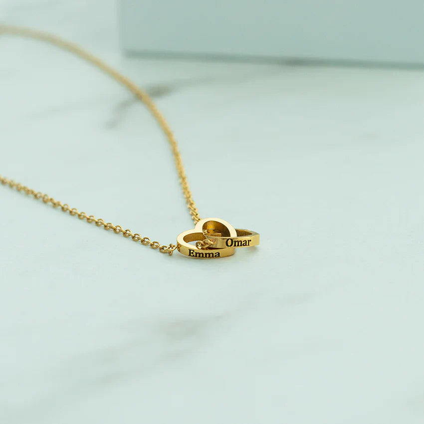 Deux cœurs liés pour toujours, gravés de vos deux prénoms, initiales..